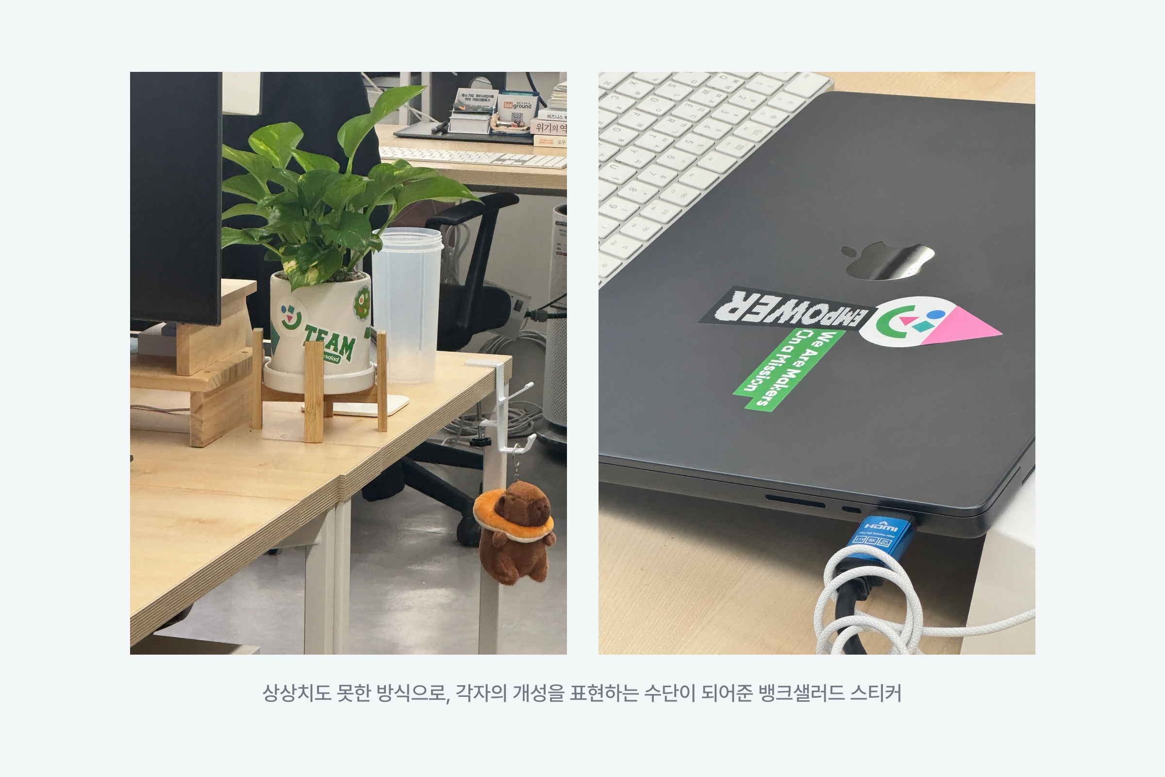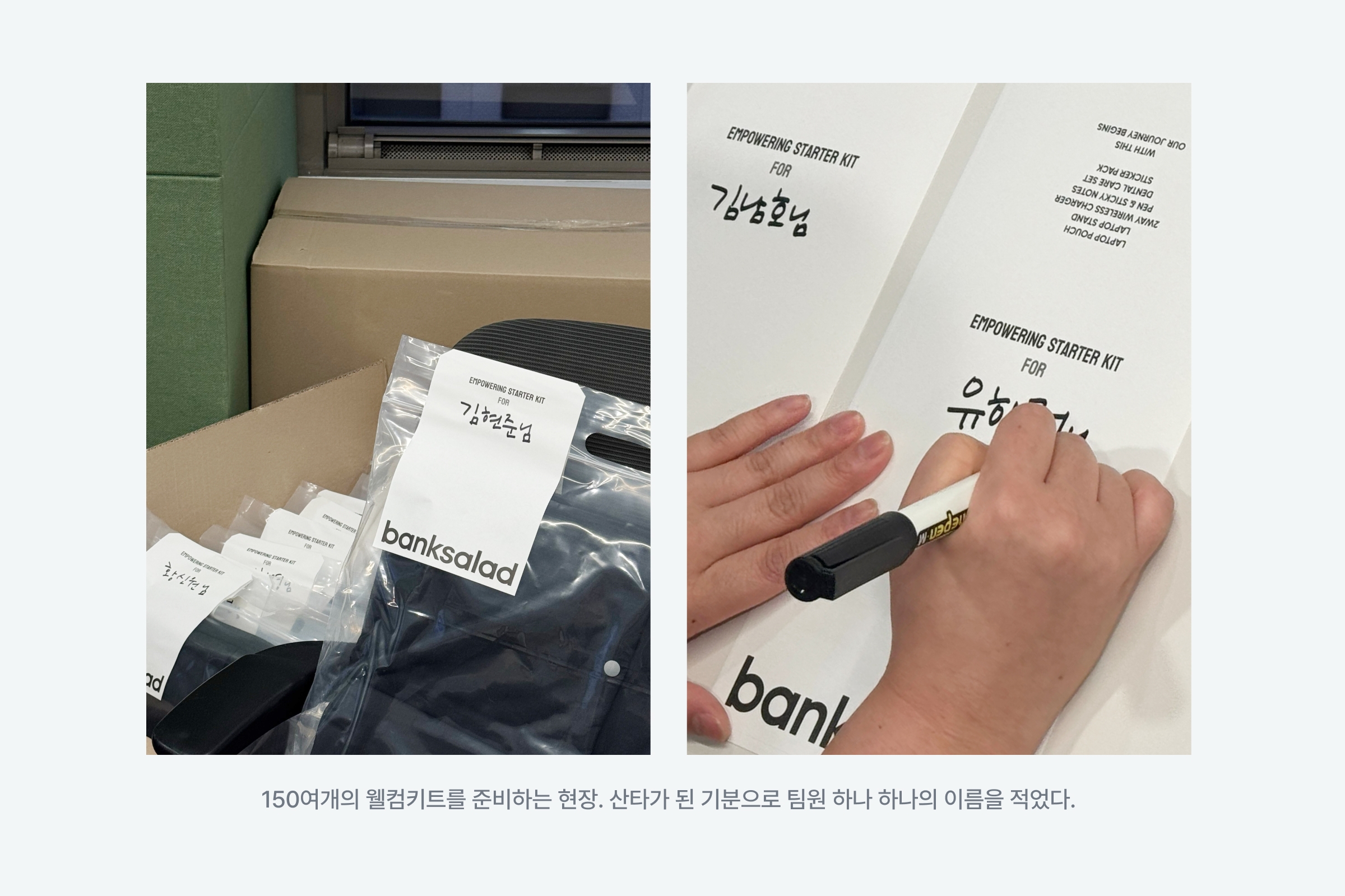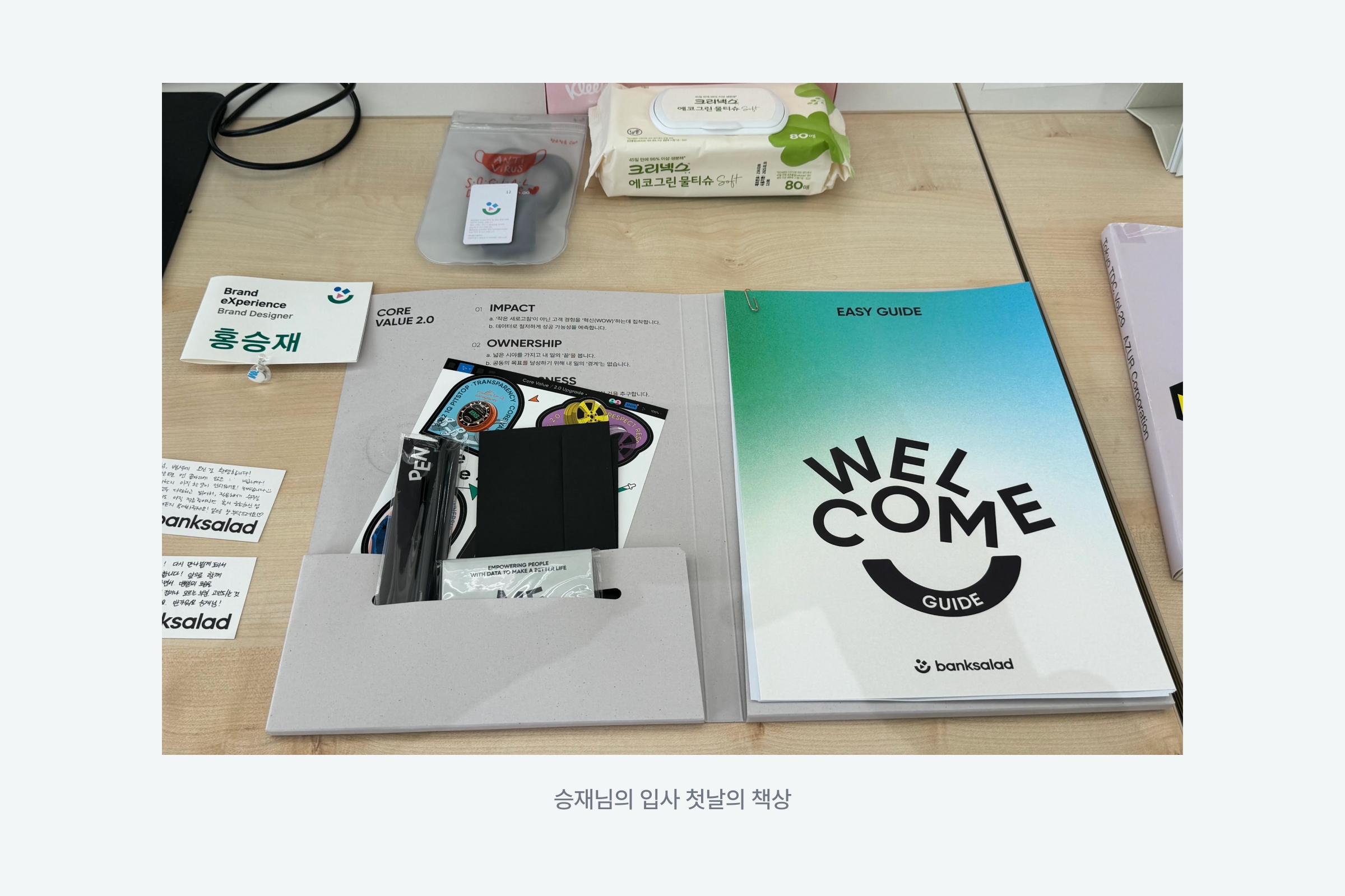 웰컴키트는 단순한 환영 선물을 넘어, 뱅크샐러드가 일을 대하는 태도를 보여주는 첫인상이라고 생각했어요.