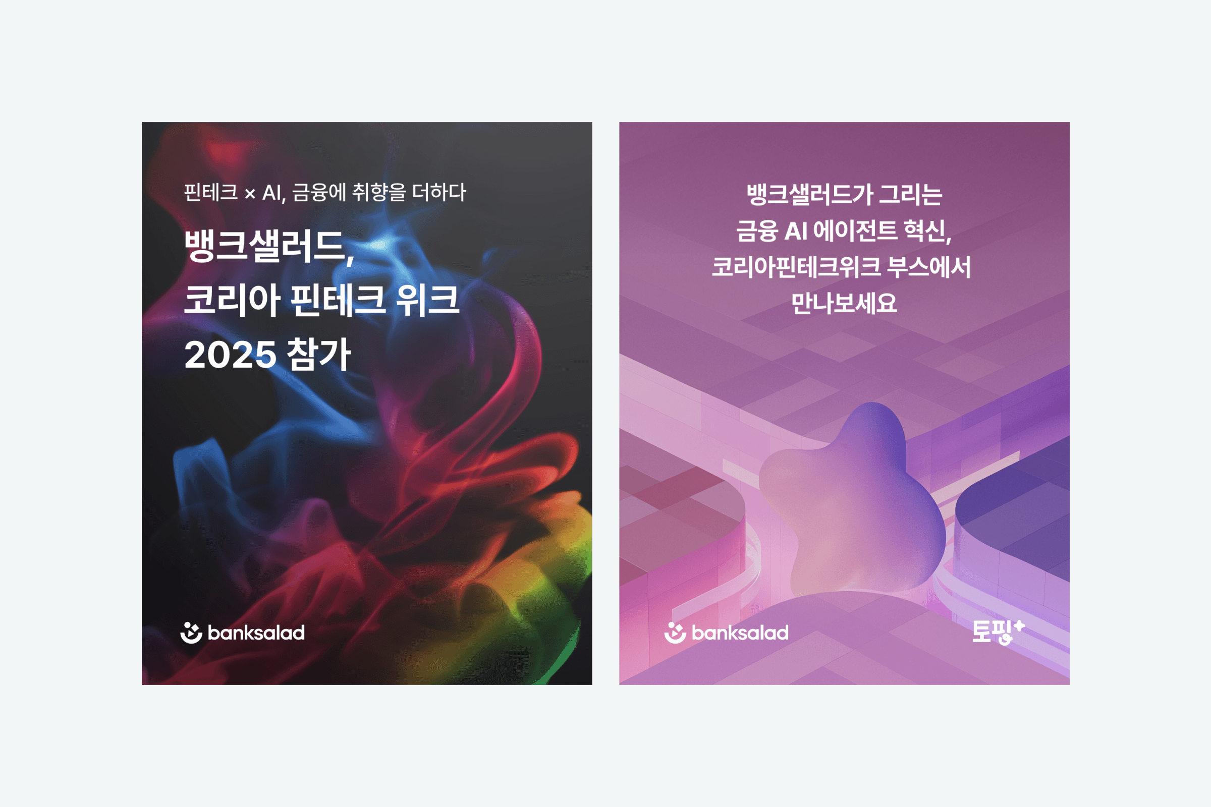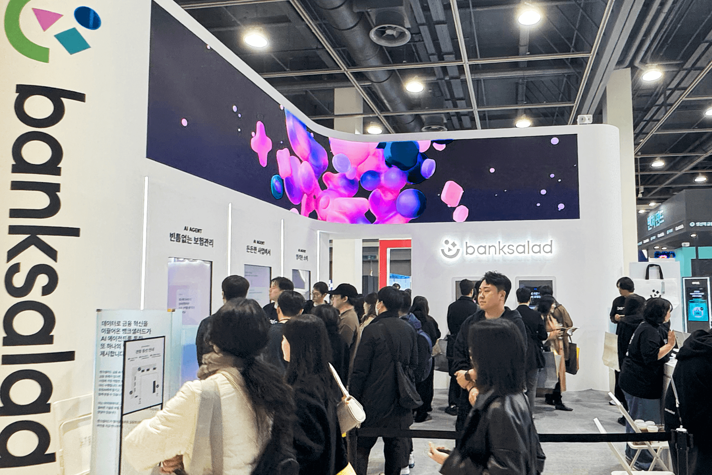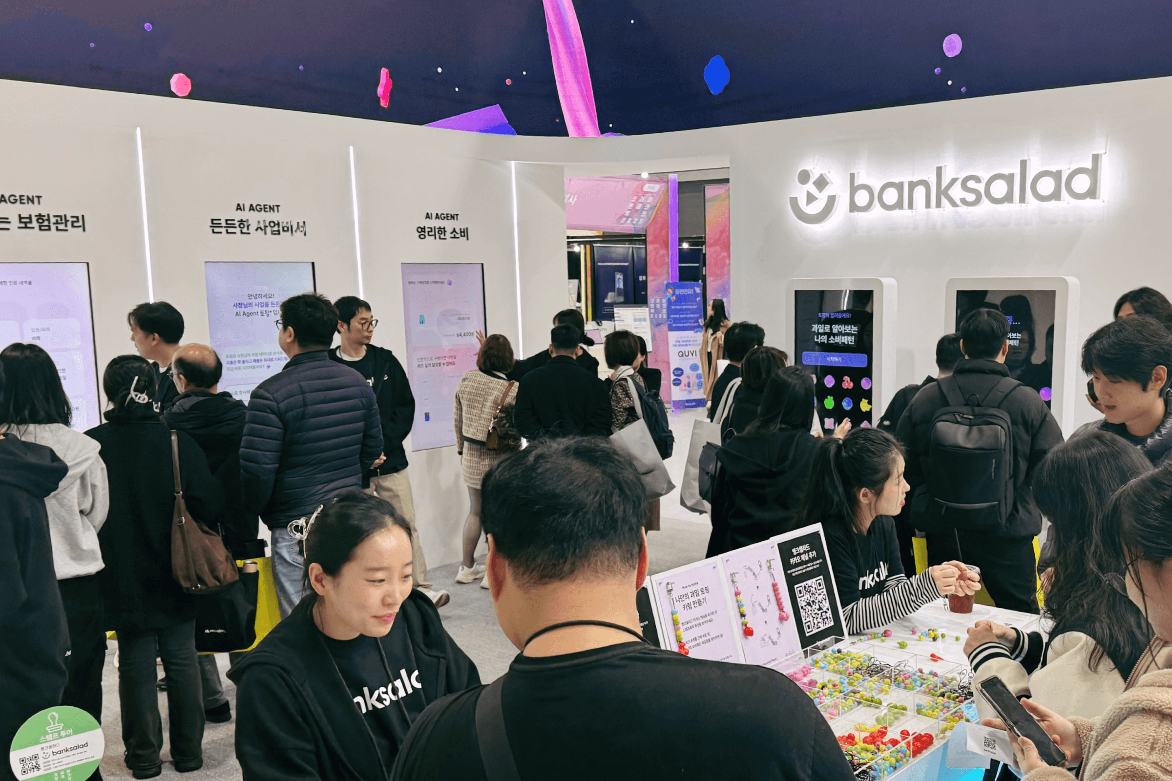 뱅크샐러드가 11월 말 양재 aT센터에서 열린 ‘코리아 핀테크 위크 2025’에 독립부스로 참여했습니다!